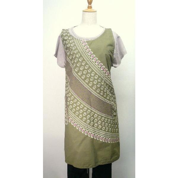 母の日に インド綿 個性的なデザイン エスニックプリント ミディアム丈エプロンドレス モスベージュ Ap120405 唐花庵 通販 Yahoo ショッピング