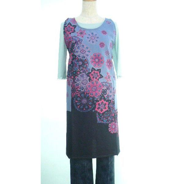 母の日に インド綿 個性的なデザイン エスニックな花 ミディアム丈エプロンドレス ブルー Ap140603 唐花庵 通販 Yahoo ショッピング