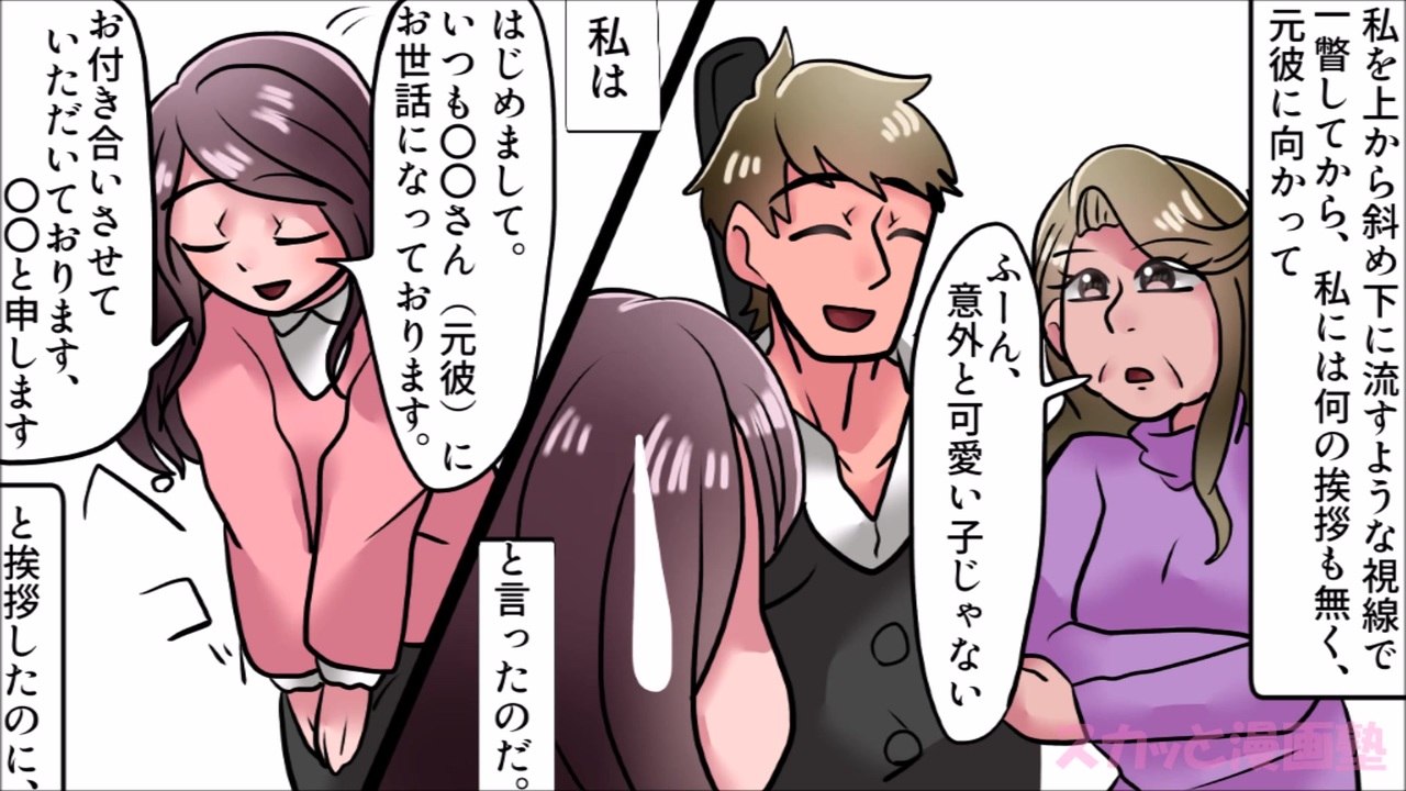 彼氏のお母さんに紹介してもらった時 一瞥されて ふーん 意外と可愛い子じゃない と言われモヤモヤ スカッとする話を漫画化 190 ニコニコ動画