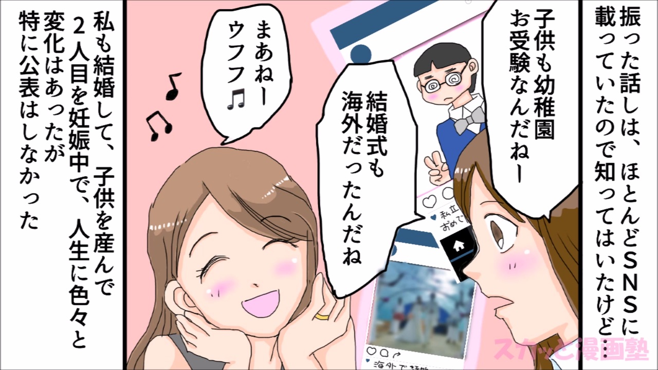 Snsに自分の幸せな日常を投稿しまくっている友人から久々に連絡が来た 会って私の近況を知った友人が逆ギレ スカッとする話を漫画化 193 ニコニコ動画