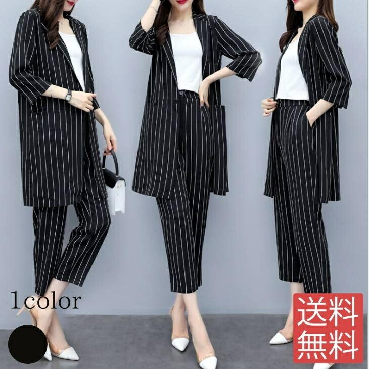夏定番 パンツスーツ ストライプ 黒色 スーツセット入園式入学式 レディース フォーマル ママ 卒業式 リクルートスーツの通販はau Pay マーケット Candyz Pro