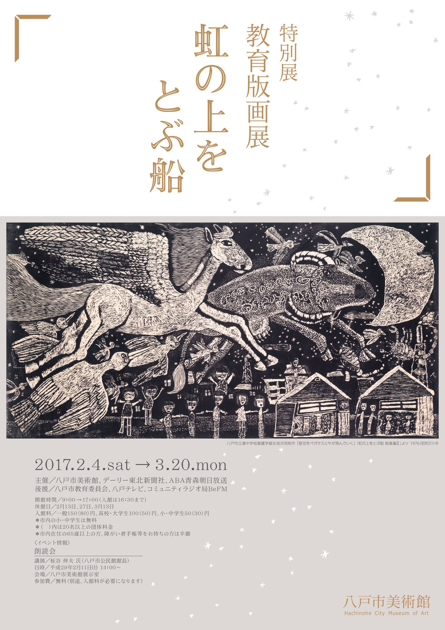 八戸市新美術館建設推進室 Co部屋 コベヤ On Twitter 今夜は 魔女の宅急便 がテレビ放送されるそうですね 劇中に登場する画家 ウルスラが描く絵画は 八戸市立湊中学校養護学級の共同制作版画 星空をペガサスと牛が飛んでいく がモデルになっています この